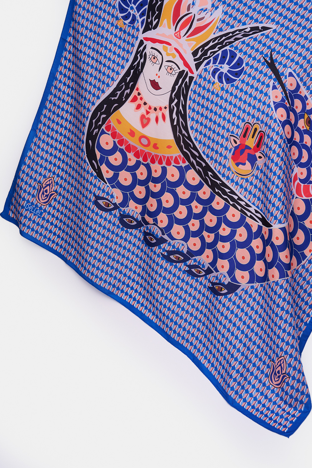 Dellel monogram desenimizin modern dokusunu, Mardin kültürünün büyülü sembollerinden Şahmaran ile bir araya getiren bu özel fular; geleneksel ile çağdaş estetiği aynı tasarımda buluşturan benzersiz bir parçadır.